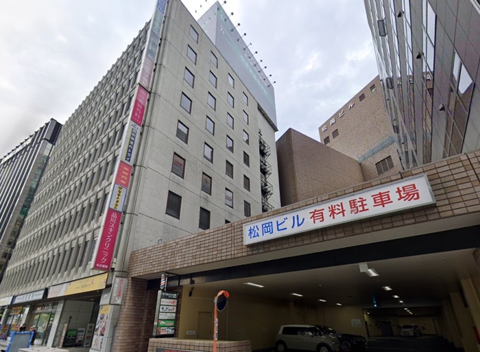 「松岡ビル有料駐車場」が見えるのでその先隣にある「桑名ビル」1階のケーキ屋「パティスリーマルベリー」の奥にあるエレベーターで5階に行くとメンズリゼ 名古屋駅前院があります。